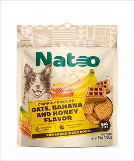 Natoo Crunchy Biscuits Oats, Banana and Honey Flavor is a cookie that combines quality, health and flavor. Created for large dogs, it offers important nutrients that help intestinal health, skin and coat and oral health of dogs.