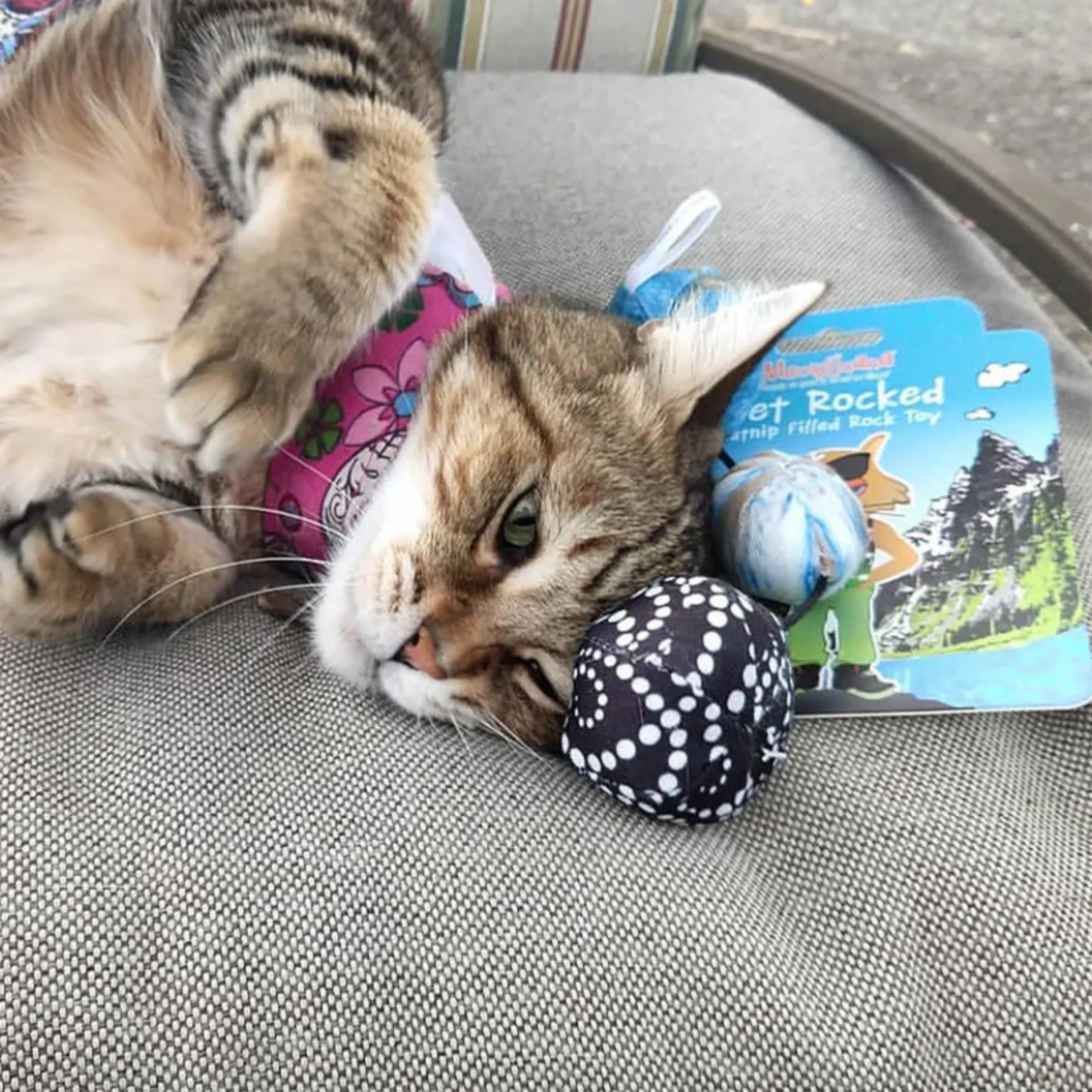 Want to rock your cats world today? Make your kitties see triple with our curiously playful, durable, ready to go, pet rock toy. These rocks are easily batted around in a frenzy and are a natural way to fulfill your cats instinctual desire to chase, pounce, and play. Already stuffed with our dope 'nip, these beautiful rock toys will roll your cats into a whole new mewniverse. Rock on kitties!!