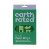 Green package of Earth Rated lavender poop bags on a white background